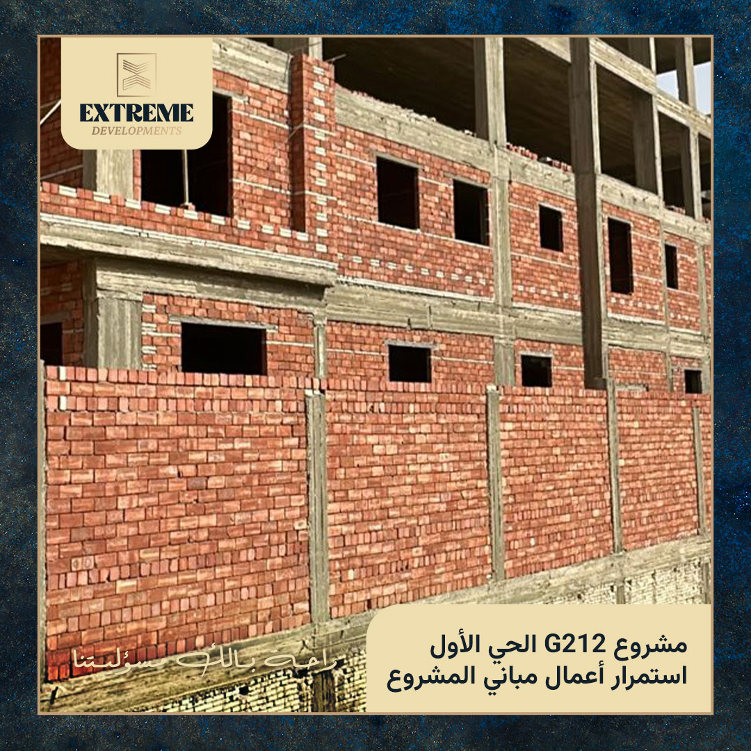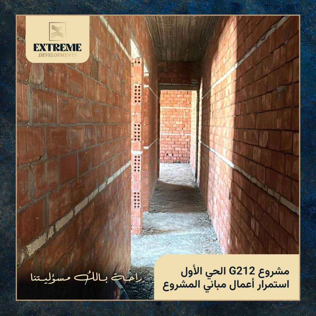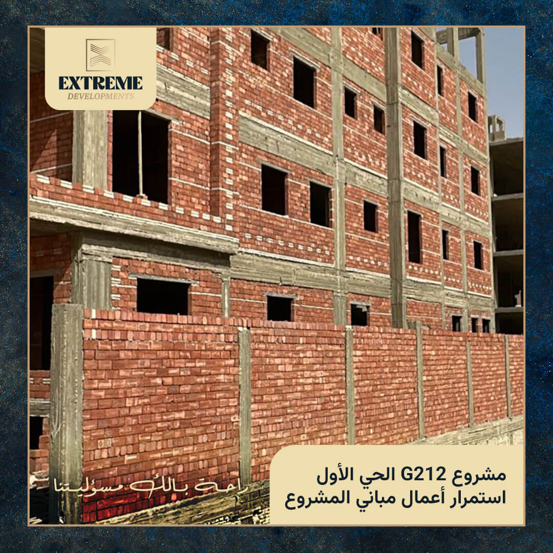 مع الانتهاء من الأعمال الخرسانية بالكامل، تنتقل الأعمال إلى مرحلة المباني بالطوب وفق المخططات التنفيذية المعتمدة، وبمتابعة دورية من الإدارة الهندسية وفِرق الإشراف الفني بالموقع.