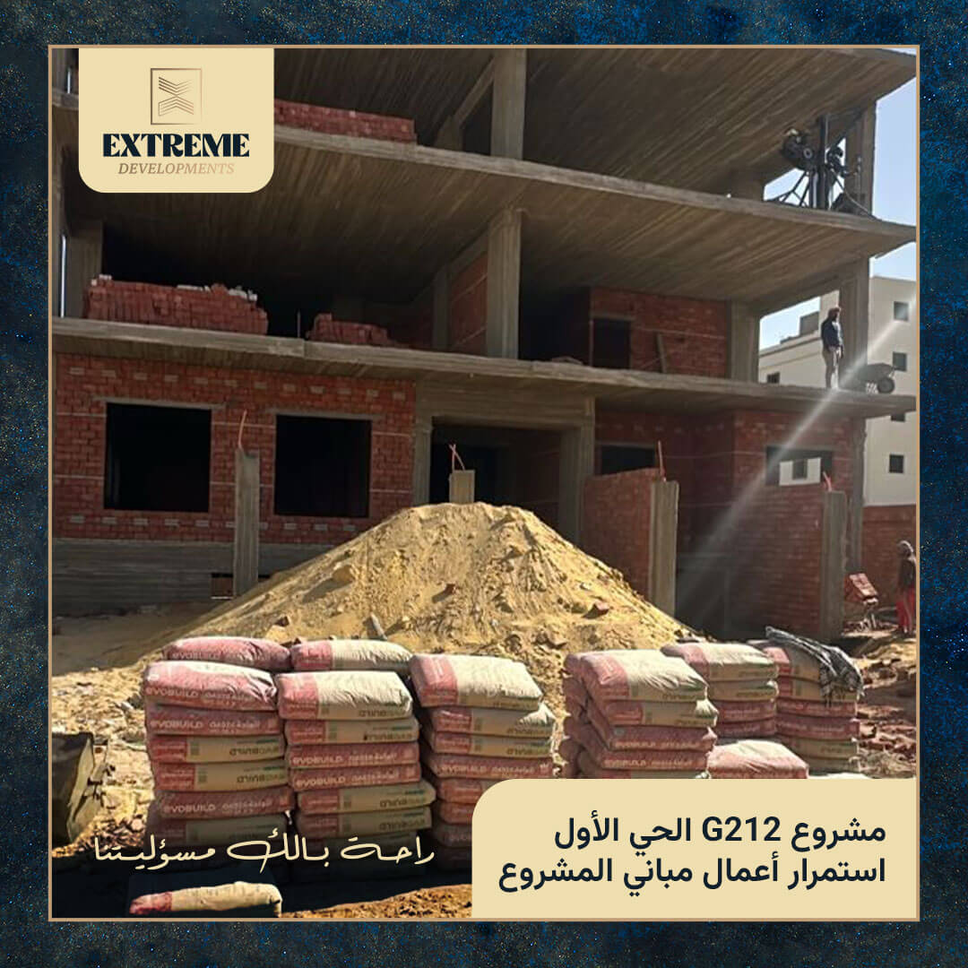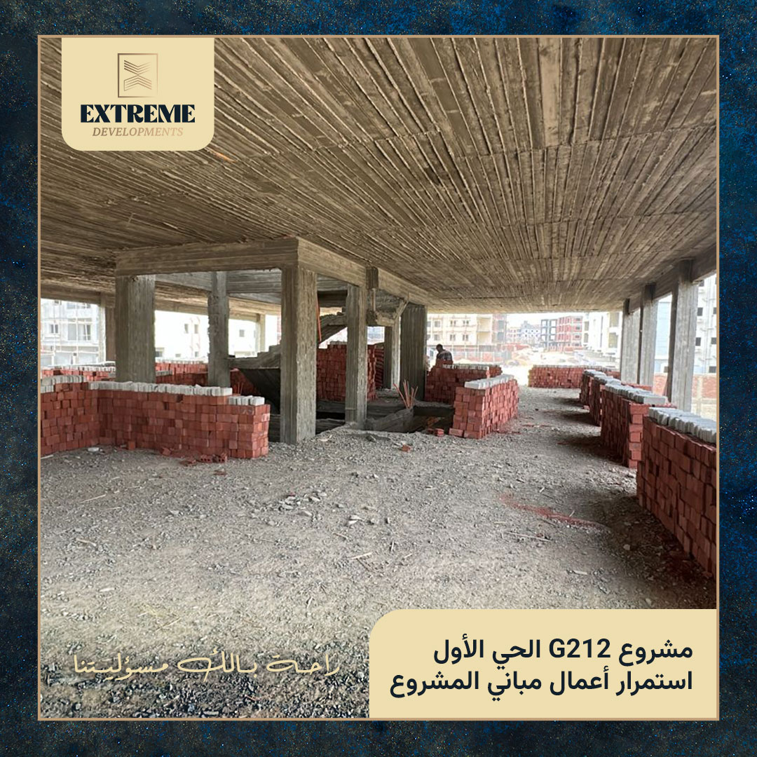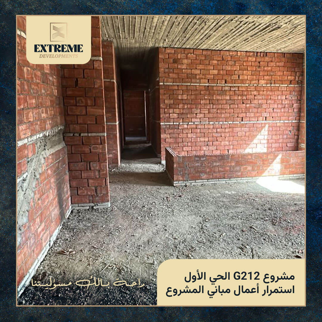 مع الانتهاء من الأعمال الخرسانية بالكامل، تنتقل الأعمال إلى مرحلة المباني بالطوب وفق المخططات التنفيذية المعتمدة، وبمتابعة دورية من الإدارة الهندسية وفِرق الإشراف الفني بالموقع.