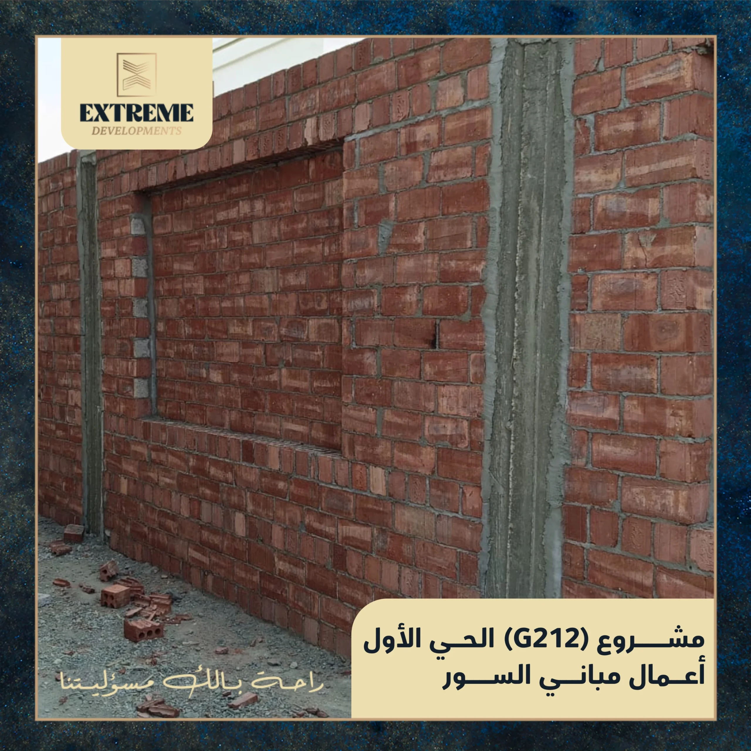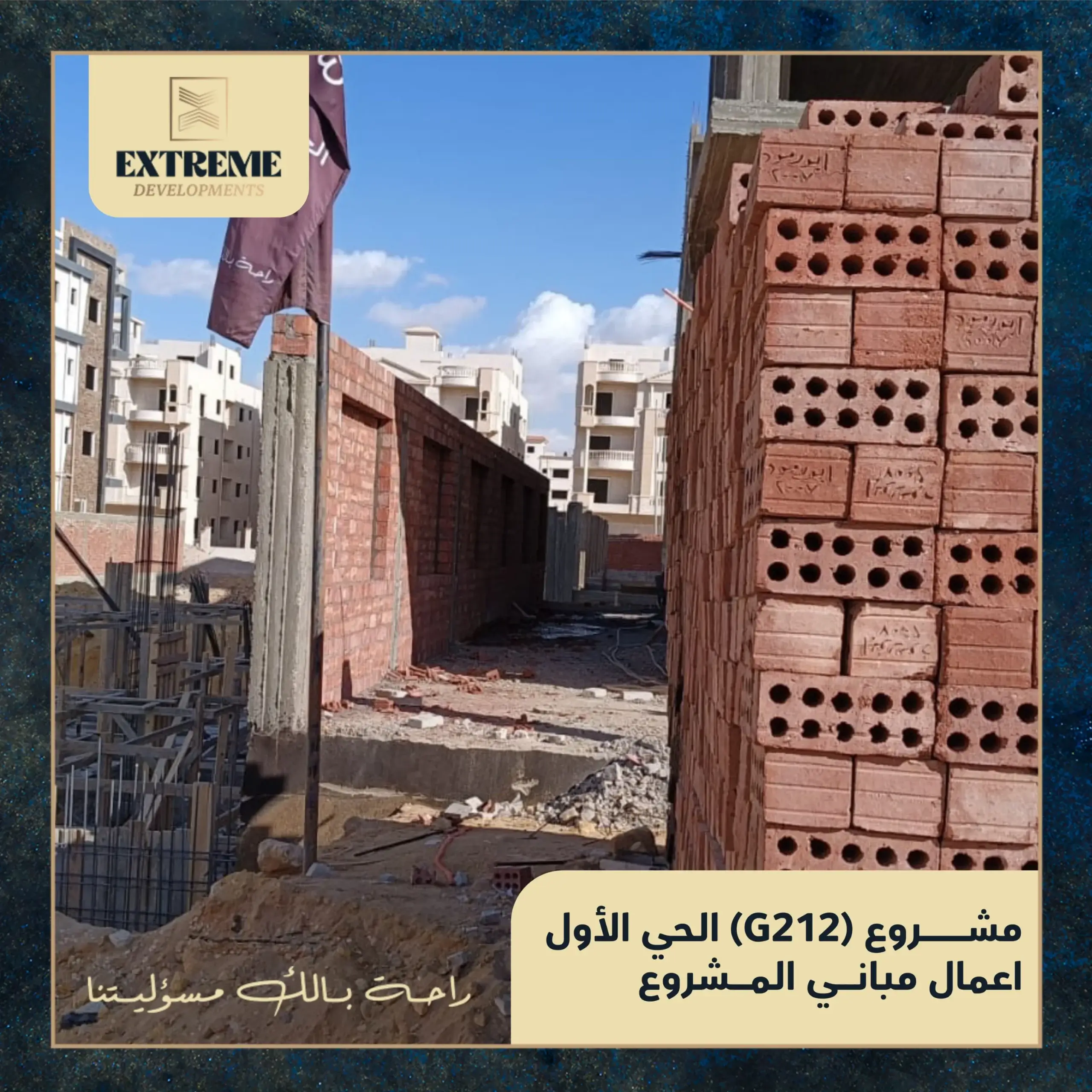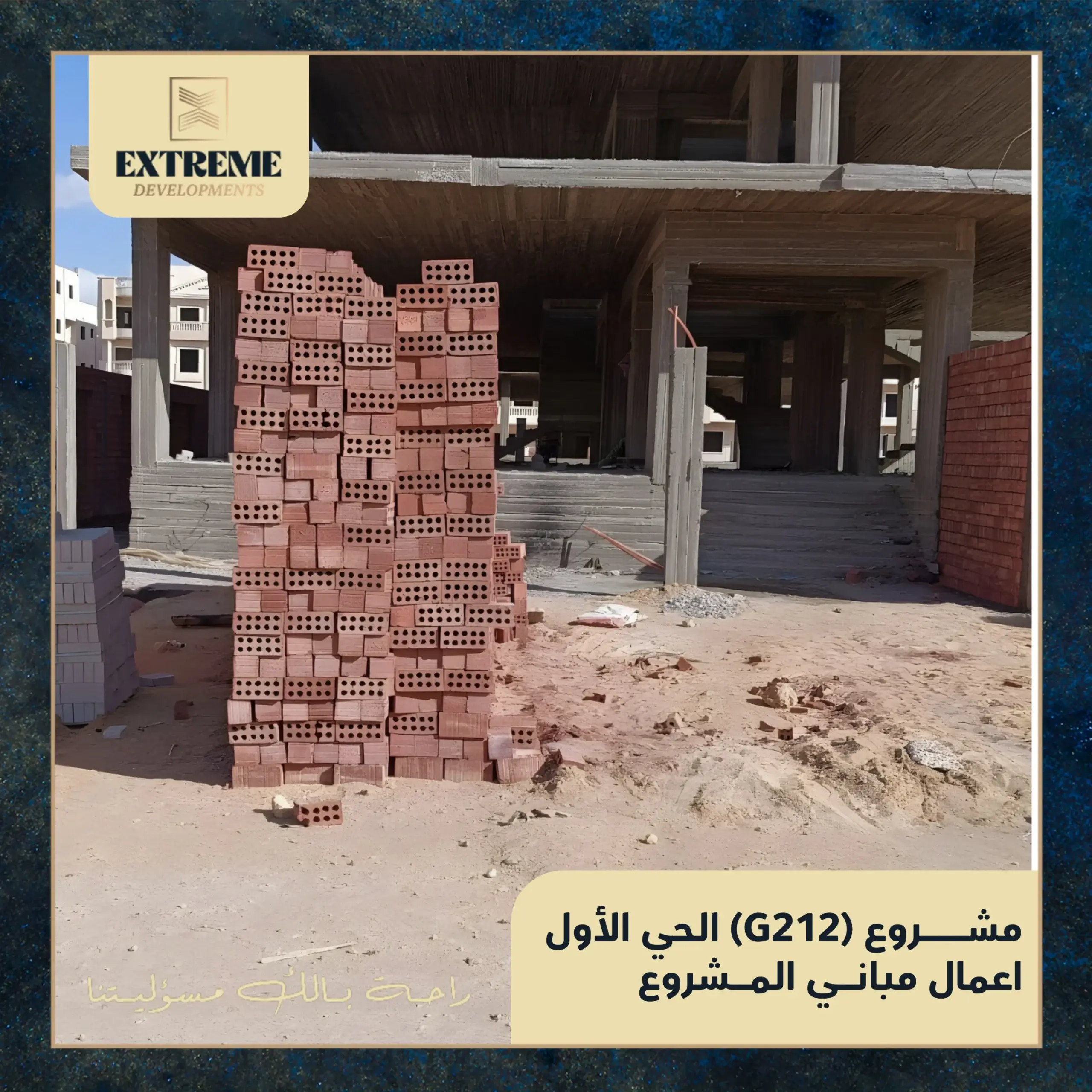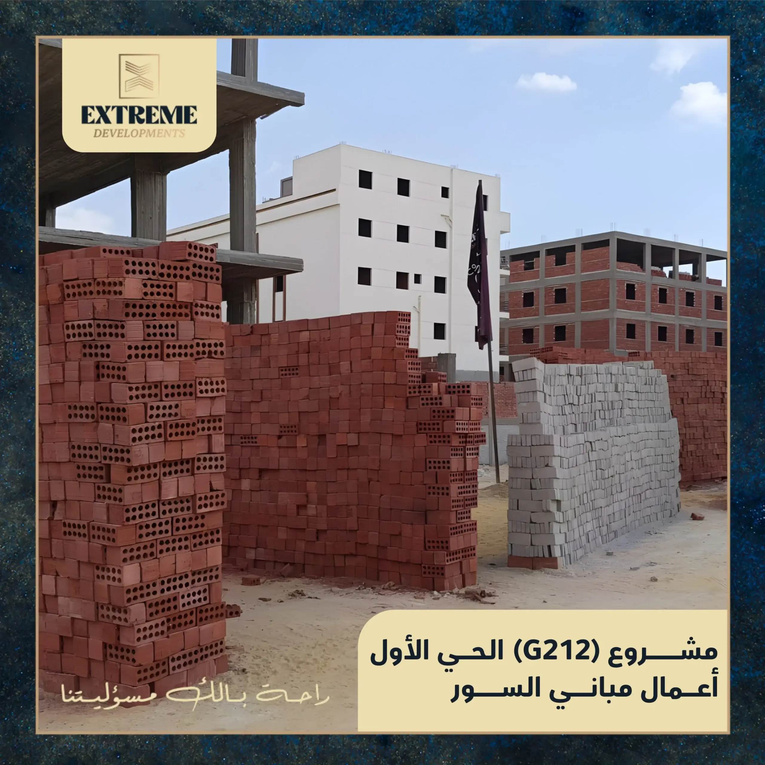 مع الانتهاء من الأعمال الخرسانية بالكامل، تنتقل الأعمال إلى مرحلة المباني بالطوب وفق المخططات التنفيذية المعتمدة، وبمتابعة دورية من الإدارة الهندسية وفِرق الإشراف الفني بالموقع.