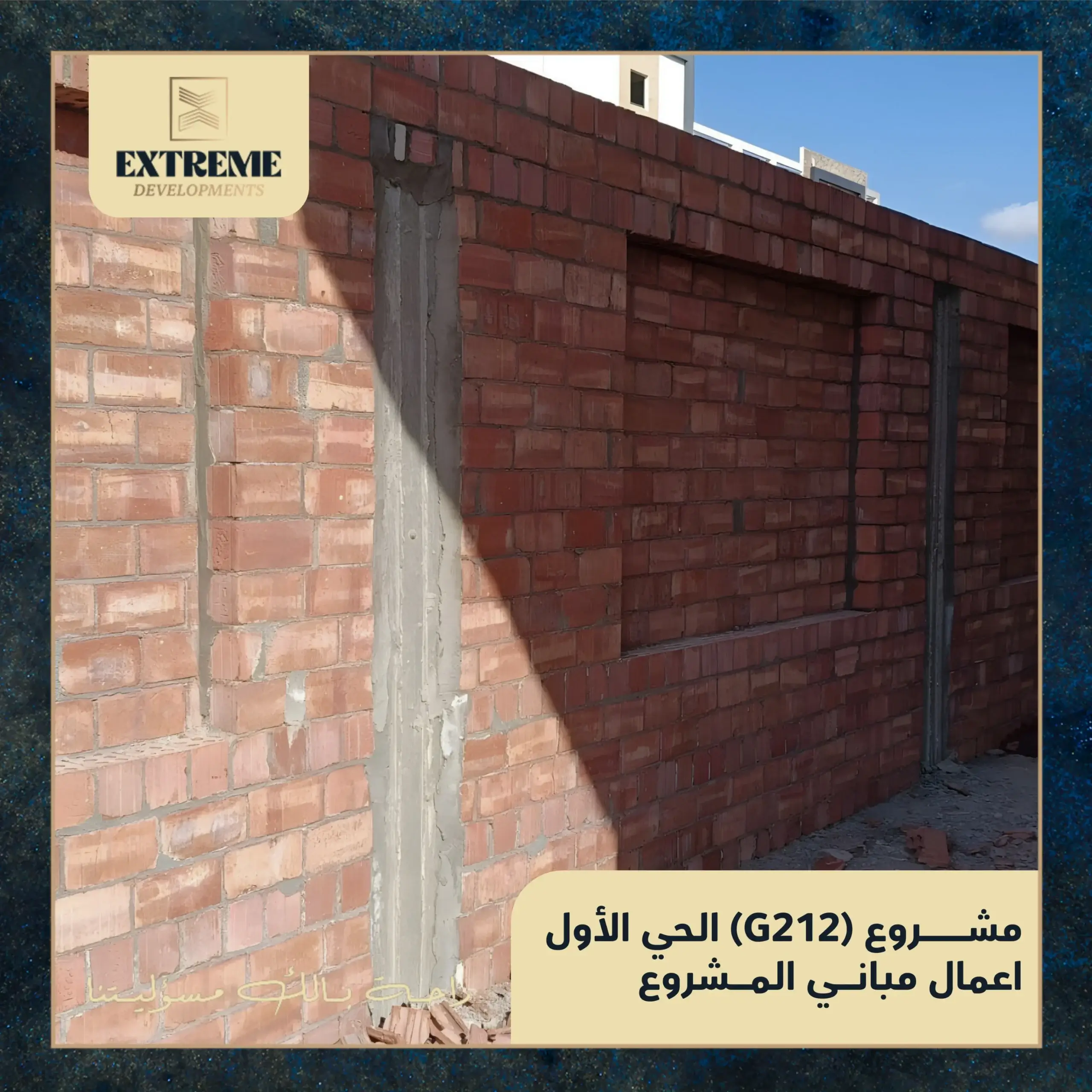 بعد انتهاء تنفيذ مرحلة الهيكل الخرساني تبدأ الادارة الهندسية في شركة اكستريم في انهاء مرحلة المباني بداية من اختيار نوعية الطوب انتهاءا الي التنفيذ الدقيق للتصميمات المعمارية مع الحفاظ علي المساحات الداخلية التفصيلية و شكل الواجهة الخارجية