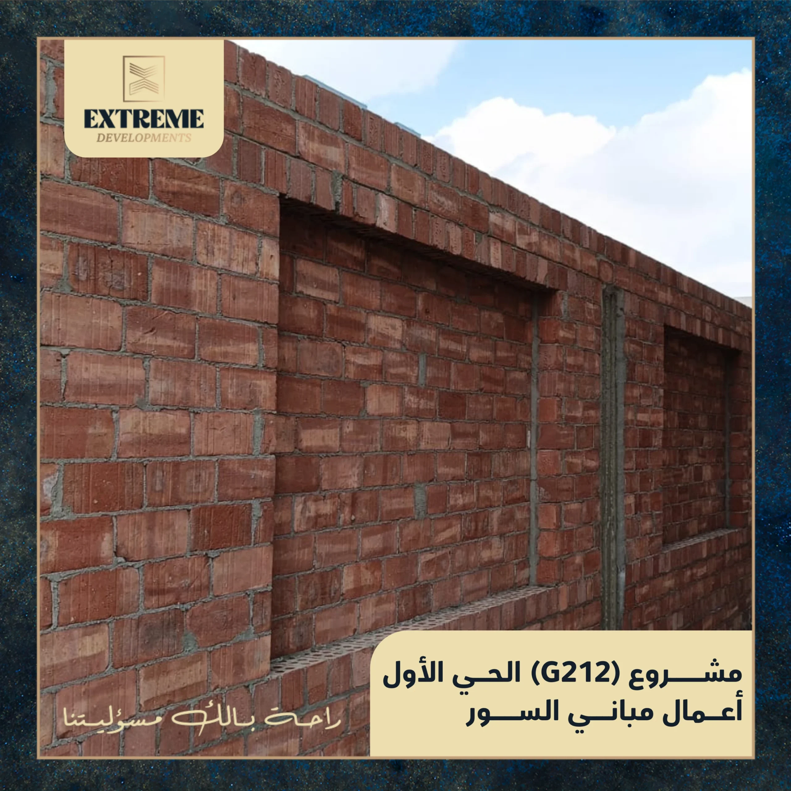 تم تنفيذ اعمال مباني الحطة الاولي للسور باستخدام الطوب الاسمنتي استعداد لاعمال صب خرسانة المشايات و شمع و طبانة الحطة الاولي للسور