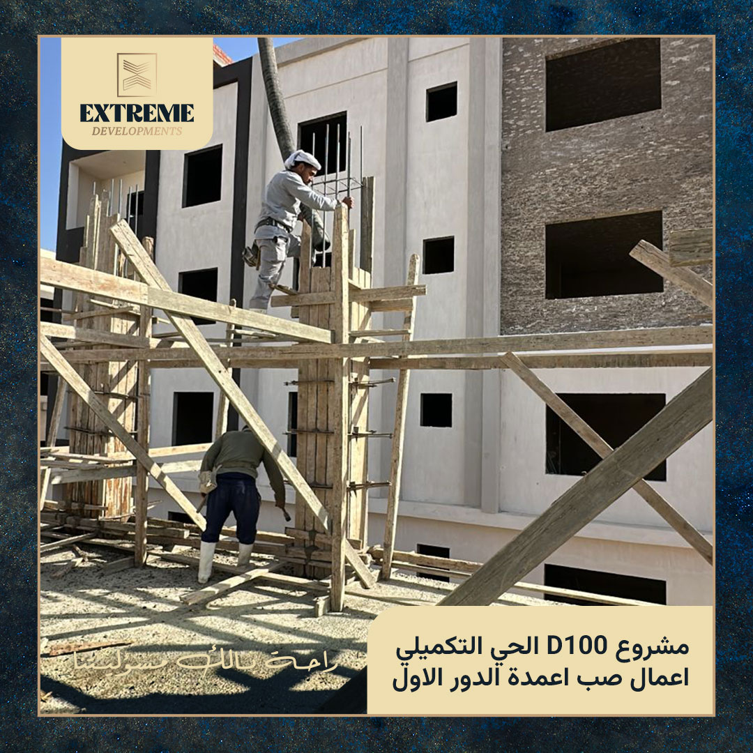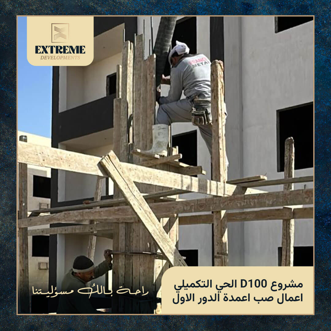 بدأت المرحلة بأعمال النجارة حيث تم أستلام أعمال النجارة بواسطة مهندسي الادراة الهندسية لاكستريم وذلك قبل البدء في اعمال الحدادة و التي تم أستلامها وفق التصميم الهندسي المعتمد والتاكيد علي الرباط و الدعم ووضع البسكوت اسفل الطبقة الاولي للحديد قبل البدأ في عملية صب الخرسانة بالجهد المحدد وفق التصميم الانشائي المعتمد من المجمعة العشرية بجهاز مدينة القاهرة الجديدة.