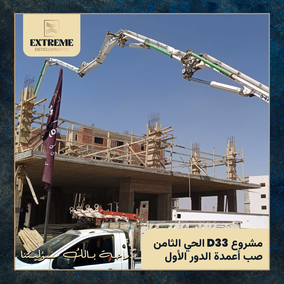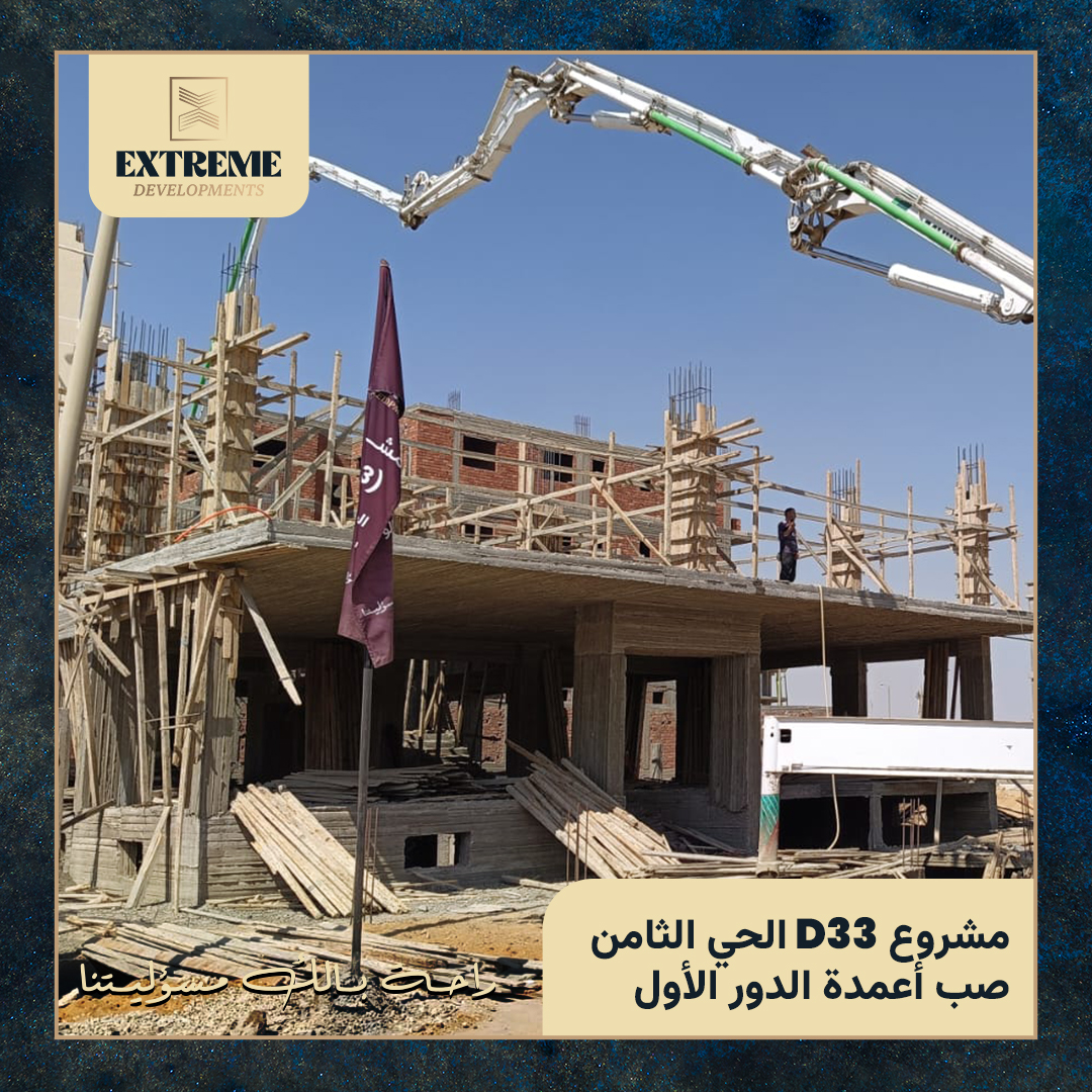 يتم تحطيط أعمدة الدور الارضي وقد تم الانتهاء من تحديد أماكنها وفق أجهزة المساحة الخاصة في المرحلة السابقة.