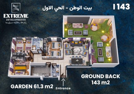 3– جراج للعقار + باب جراج كهربائي بريموت كنترول.